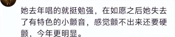 此外,她的双眼闪烁着光芒,脸上并没有刻意追求的美感,也没有过于做作的睫毛和油腻的粉底。从她那自然的肤色中,我们可以看出她在网红盛行的春晚中是一道独特的风景线。尽管她这一次的表现相当出色,但网友们对她的演唱风格进行了大量的吐槽,实时广场上到处都是这样的吐槽。